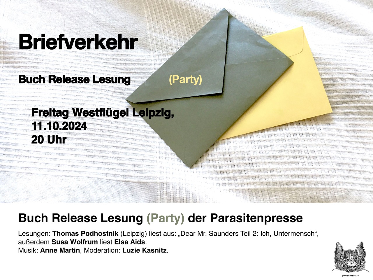 Die Parasitenprese, Köln präsentiert das neue Buch, den zweiten Teil des Romans Dear Mr. Saunder, Ich, Untermensch, des Leipziger Autors Thomas Podhostnik.