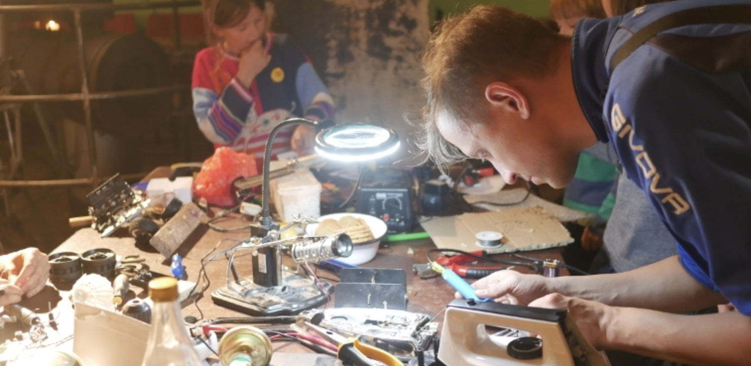 Mitzubringen: Elektroschrott (insbesondere sind akkubetriebene Geräte sinnvoll), Baumaterial (Verpackungen, alte Geräte, Spielzeug…), außerdem je nach Eigenbedarf Batterien und sofern vorhanden Werkzeug (u.a. Lötkolben, Heißkleber).