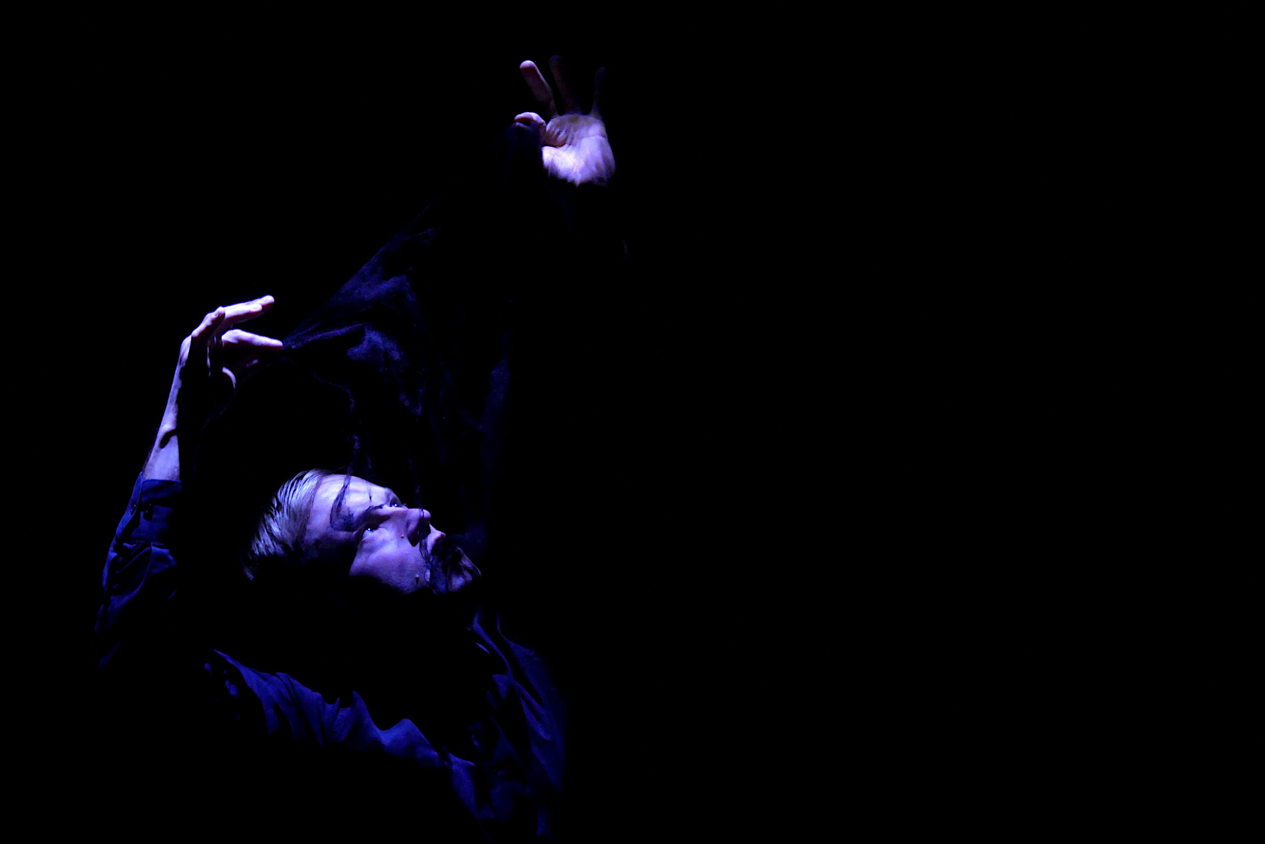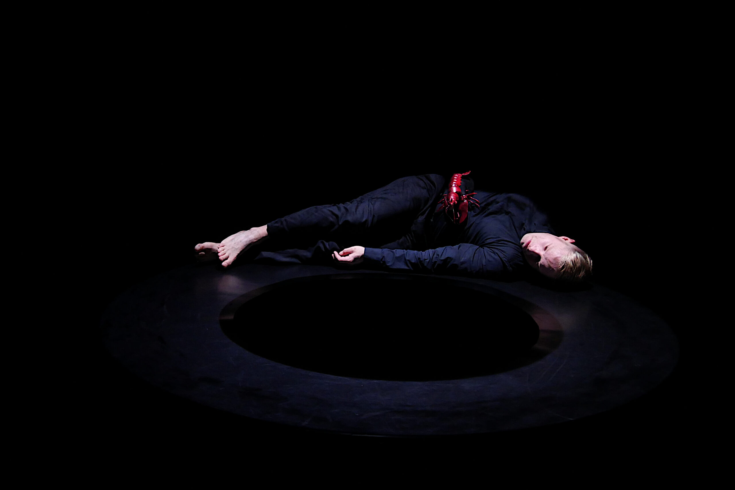 A hole, bottomless. It leads down into the depths of the human psyche, past different faces of grief. Leads down into a void that devours, a void from which springs what was thought lost. The visual and vocal reflection of human distress opens the abyss to the appearances of the uncanny. A story between the conscious and the unconscious about the empty spaces in us. A step into nothingness to resonate with the void.