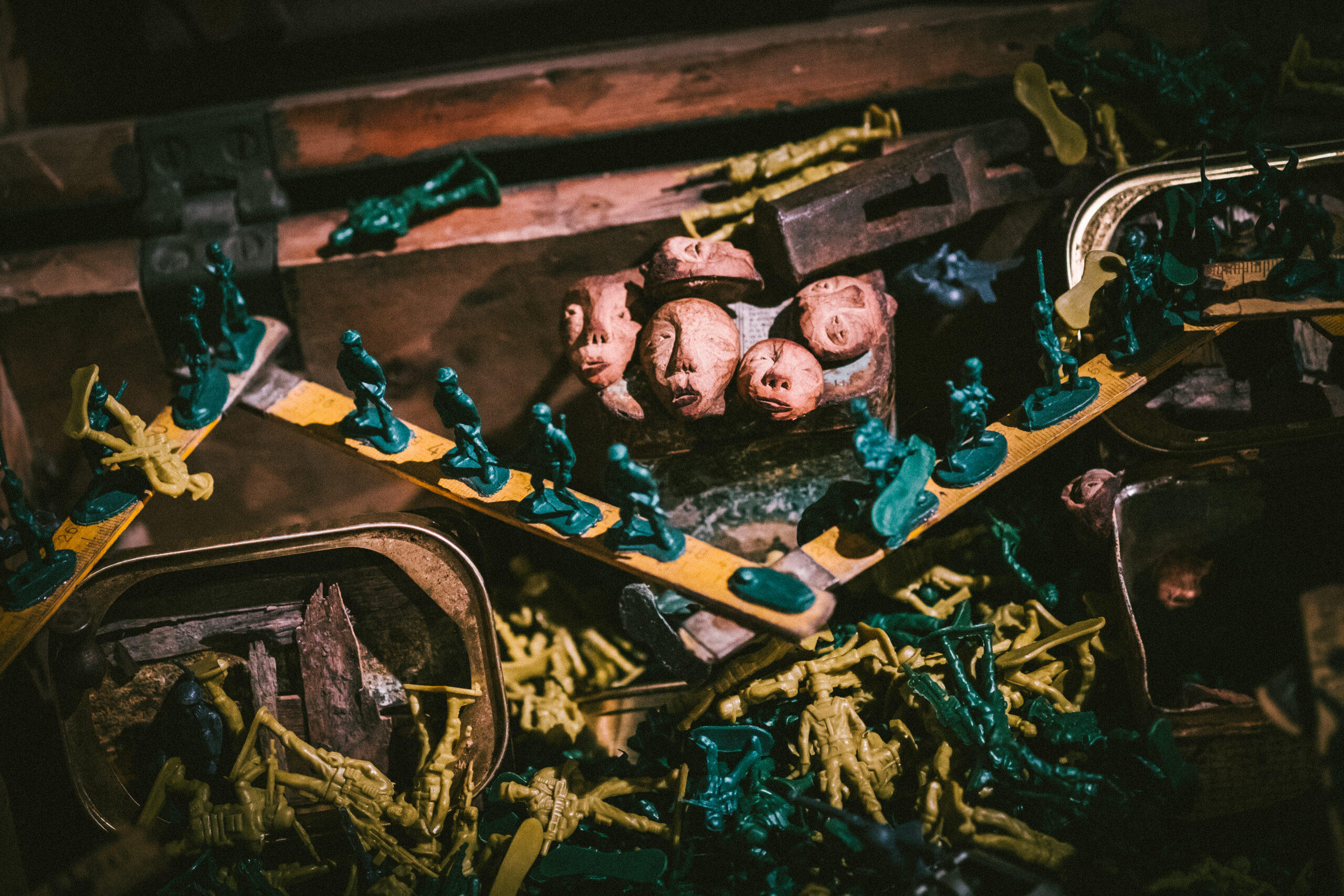 With the staging as a resonance chamber, the audience is directly involved in Karim’s perspective from the beginning of the show. War Maker is a multidisciplinary theatre performance that combines visual art, new media with documentary film and object theatre.